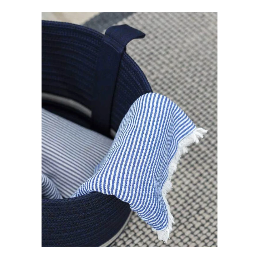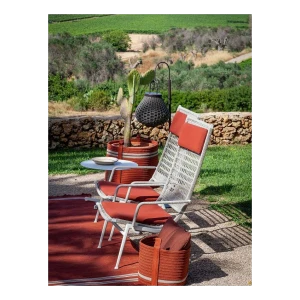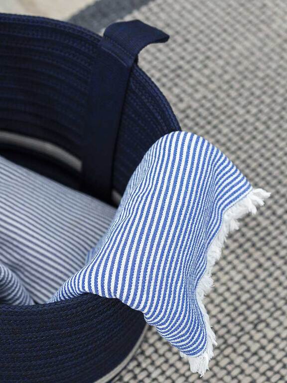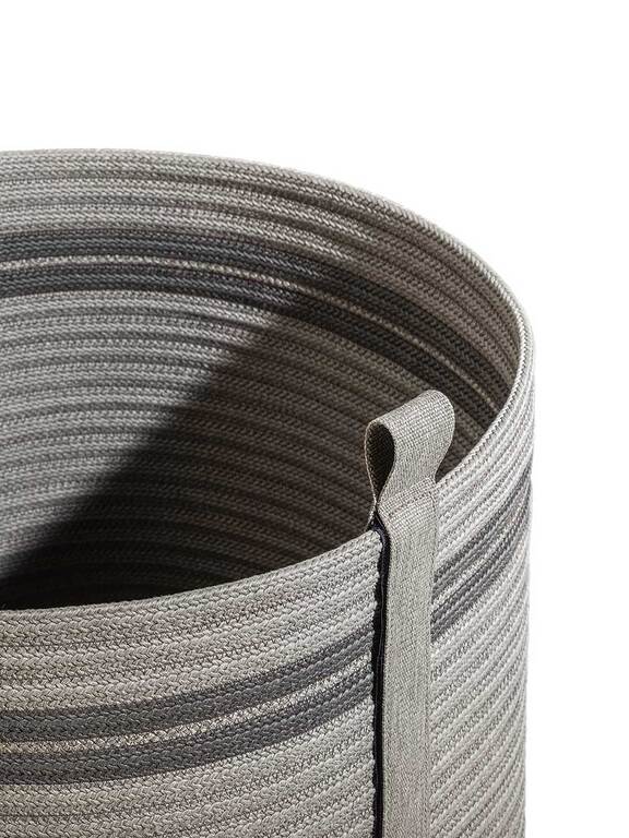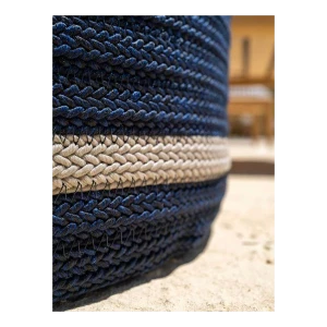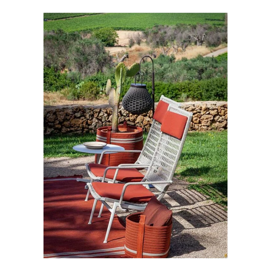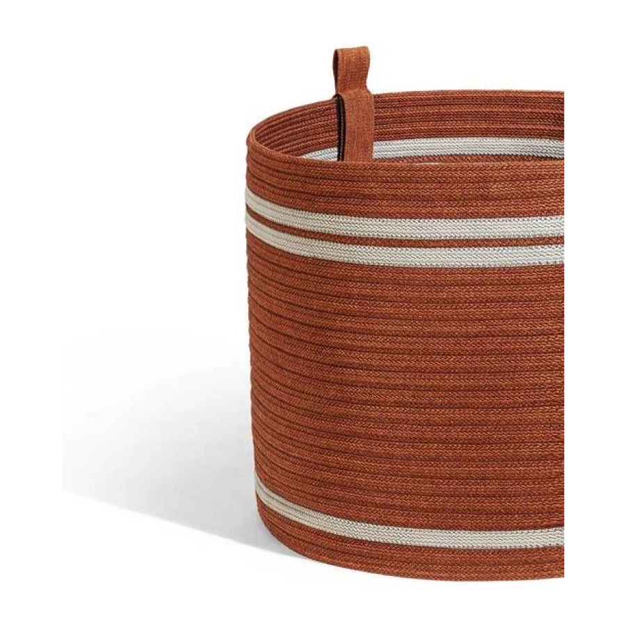 A touch of colour to personalise indoor and outdoor spaces and carefully store your items and accessories. The Sherazade outdoor baskets, designed by Simona Cremascoli, are made from a polypropylene braid sewn together. Combined with the outdoor rug of the same name, the baskets come with two fabric handles and are available in two sizes: the large basket is perfect for holding pots and plants, while the small basket is designed to hold cushions, blankets and accessories. Three shades to choose from: ecru, blue and rust. In hard-wearing, weather-resistant outdoor fabrics, they are part of Poltrona Frau’s Boundless Living Outdoor Collections.