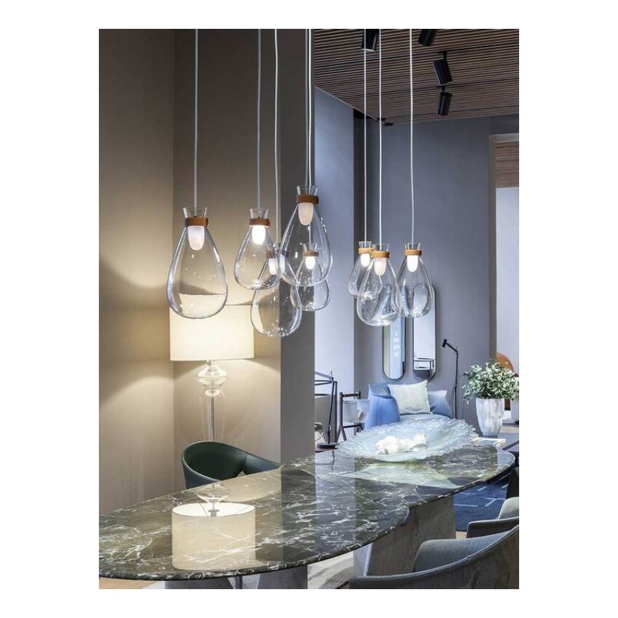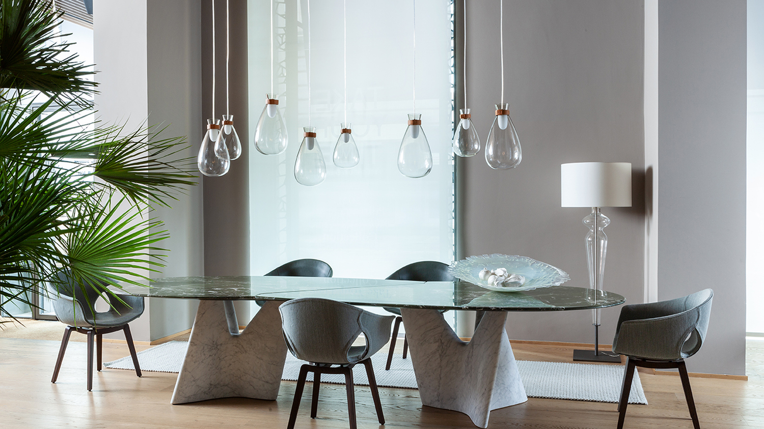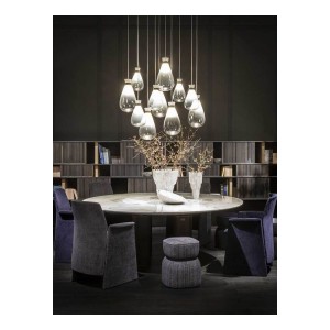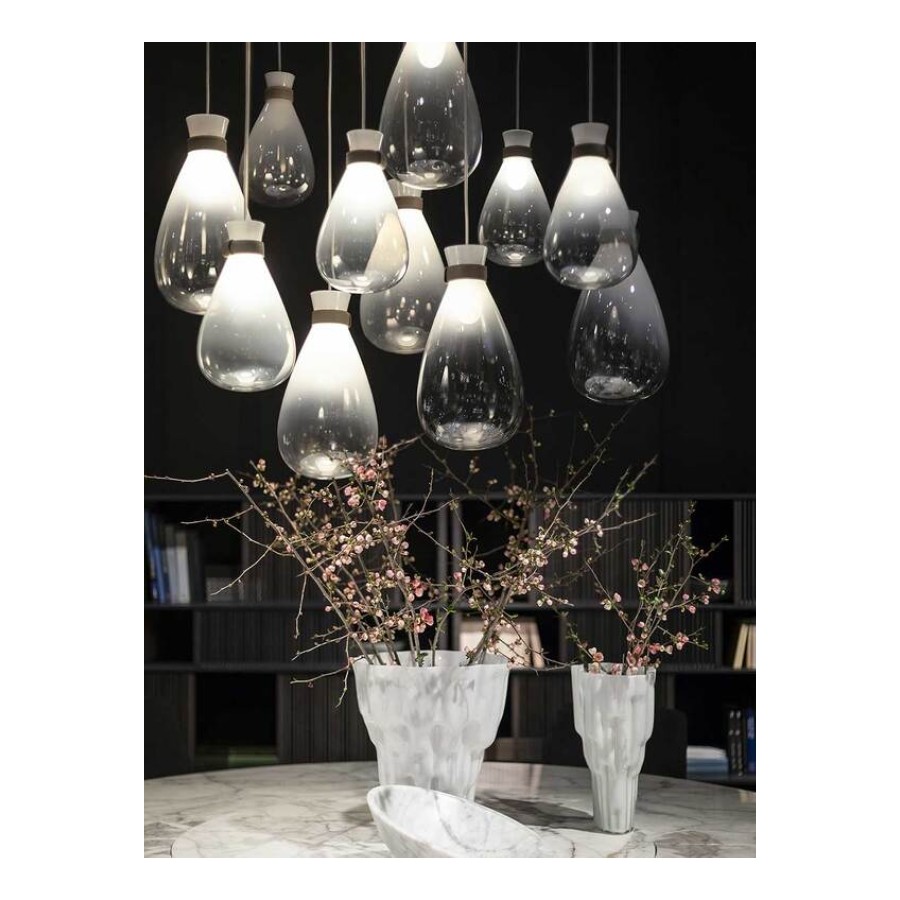 A magical and harmonious effect, perfect in various settings, made even more evocative by the unique nature of every Soffi lamp. The blowing of body-tinted glass produces different nuances and irregularities in the shape of the light.