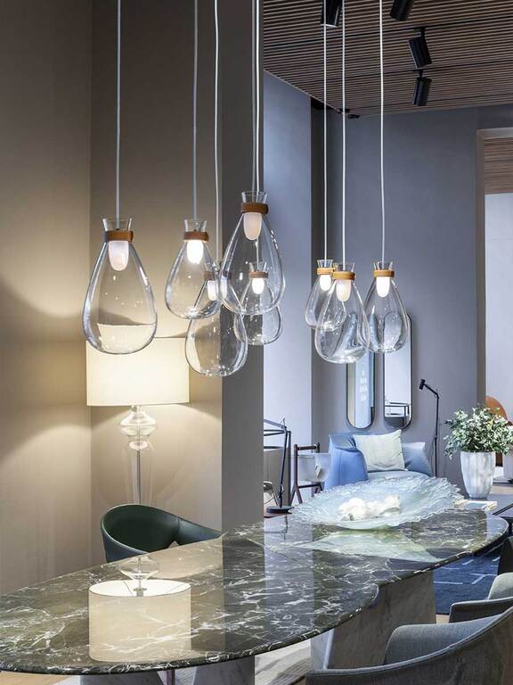 Soffi. The purity of light and glass blown by skilful Venetian artisans.