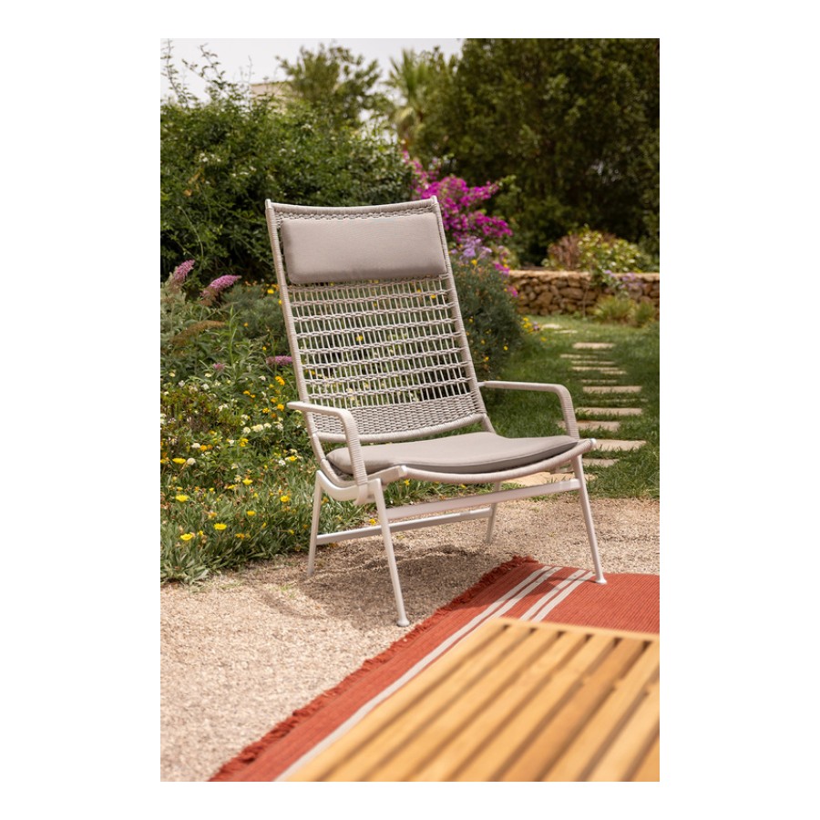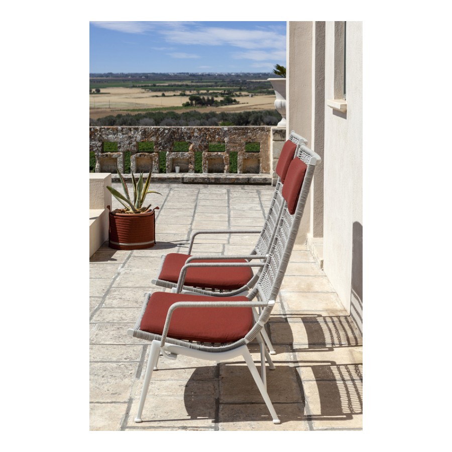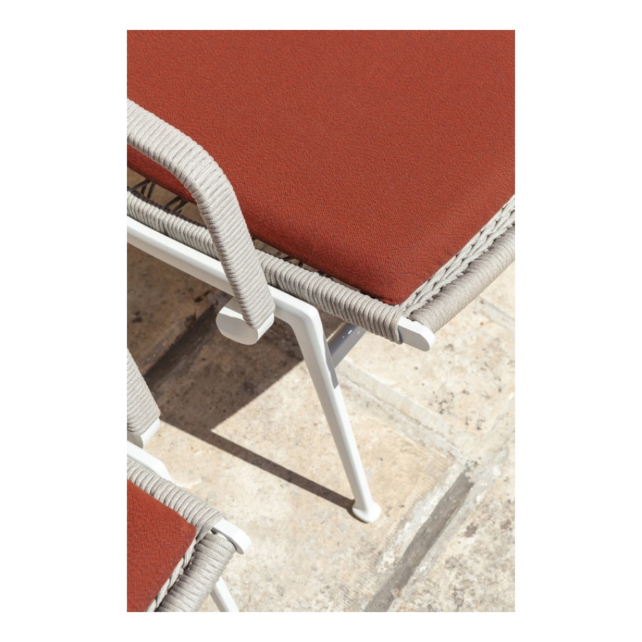 Outdoor furnishings with refined taste and clean-cut lines, characterised by soft seating elements with large cushions and hand-woven rope textures, alternating full and empty spaces, thus de-materialising objects and allowing the space to be experienced in its entirety. Solaria consists of just three materials – stainless steel, rope and fabric cushions. Everything can be taken apart and easily re-assembled to create ever-changing linear or island configurations.