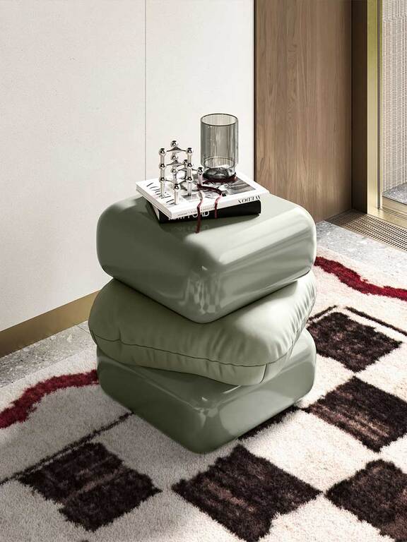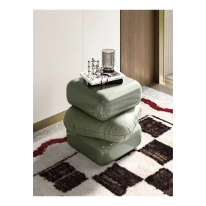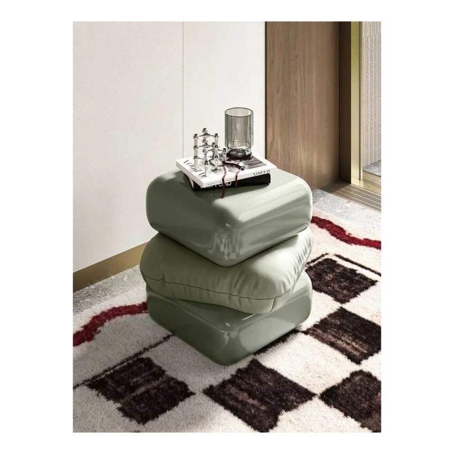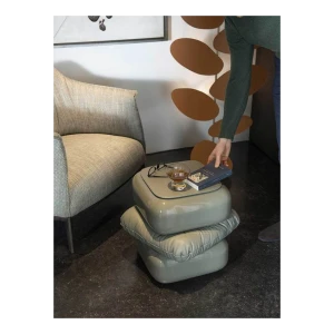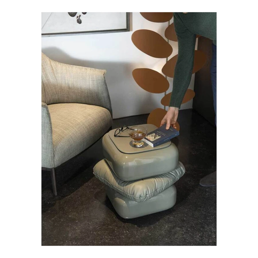The Squash occasional table showcases a bold and original design, with two lacquered wood blocks separated by a central cushion, upholstered in Pelle Frau® ColorSphere leather to match the color of the blocks. The occasional table is available strictly in four color combinations: Cream, Sage, Blue and Brown. A support mat in Pelle Frau® ColorSphere leather is available as an optional, matching the color of the table’s central cushion.