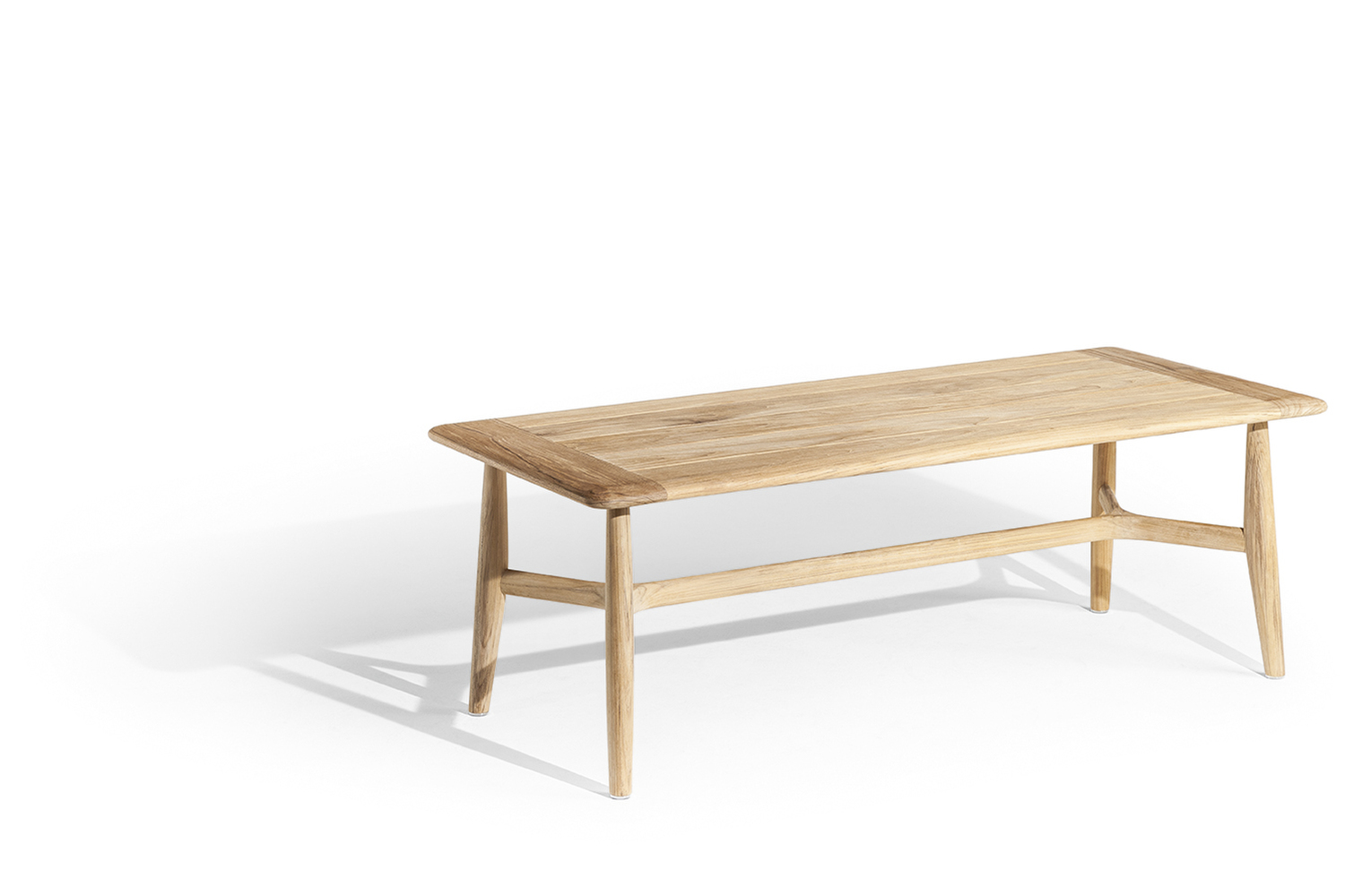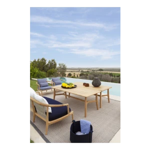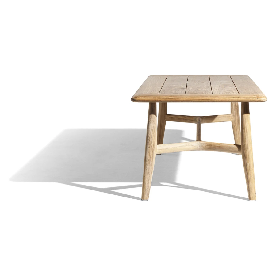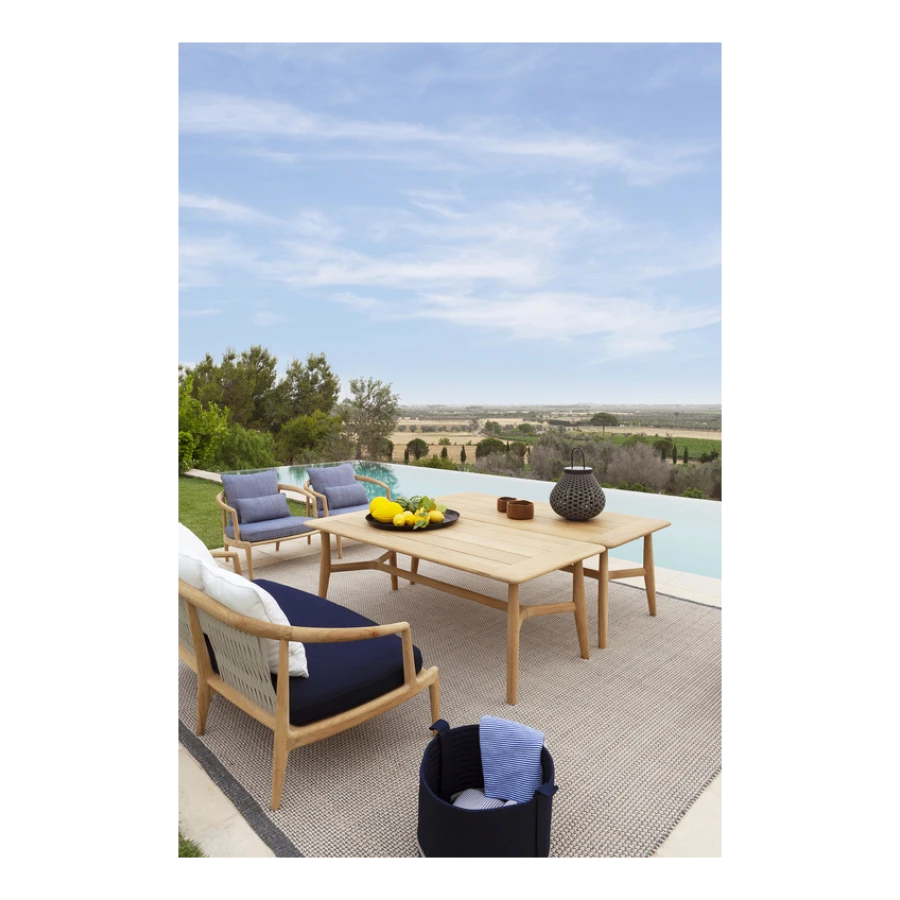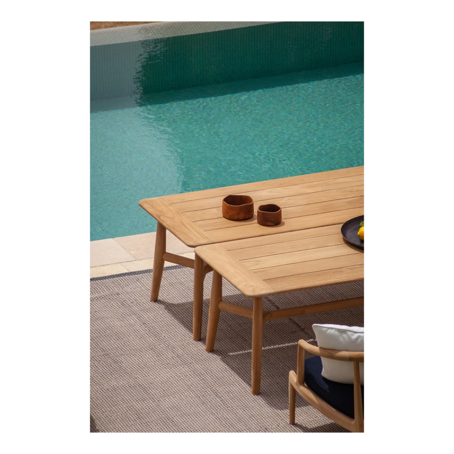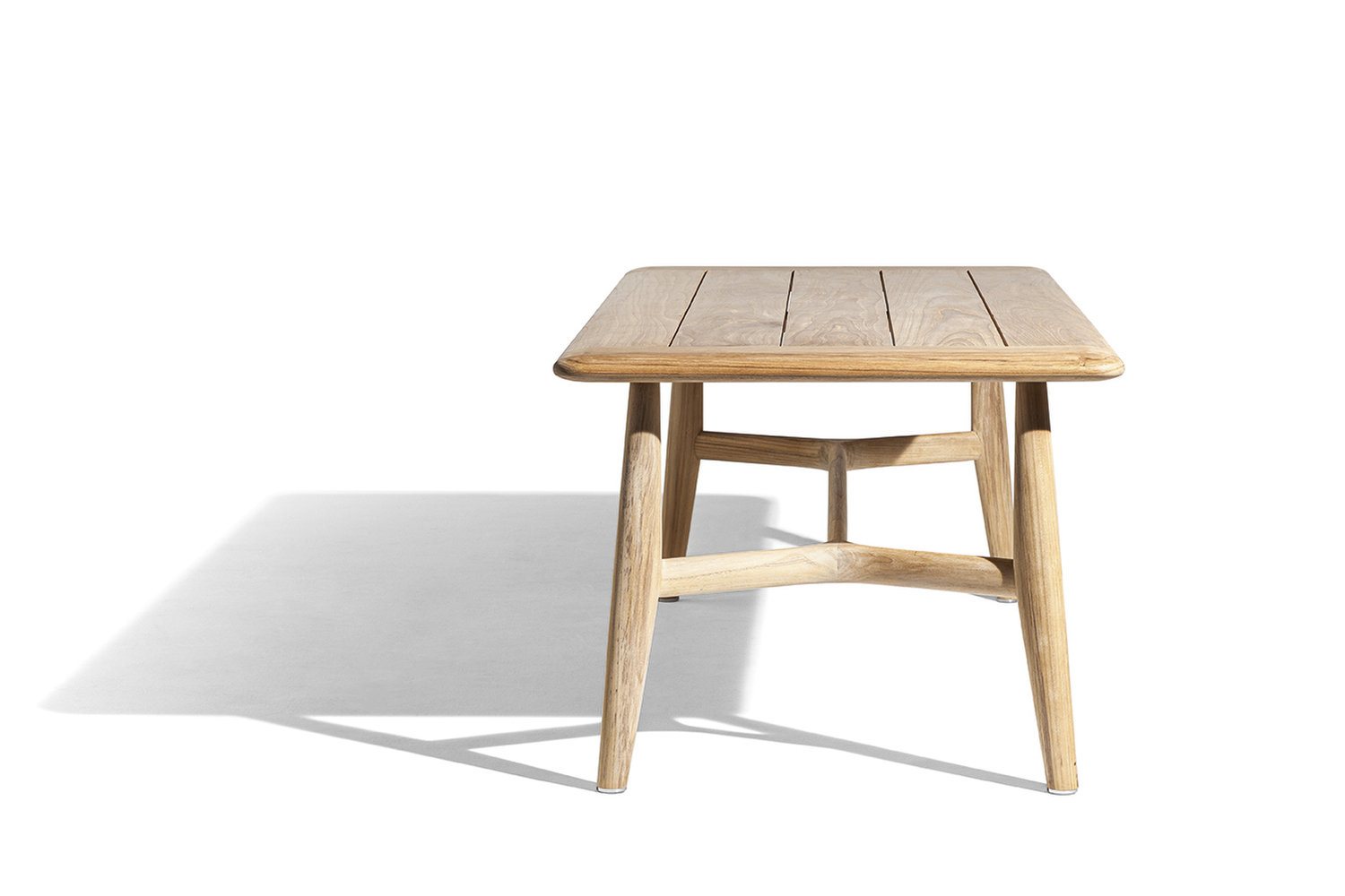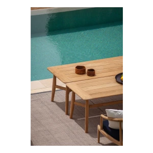 Designed for conviviality and more informal dining, the outdoor table features generous dimensions and a reduced height to adapt to the seating ergonomics of the two-seater sofa and armchairs from the The Secret Garden outdoor furniture collection, designed by Roberto Lazzeroni. The structure and top are made of solid teak wood in a natural finish. The top features a slatted design reminiscent of a classic nautical motif. Part of the Poltrona Frau Boundless Living Outdoor Collections, the The Secret Garden table is made of FSC™ 100% -certified wood.