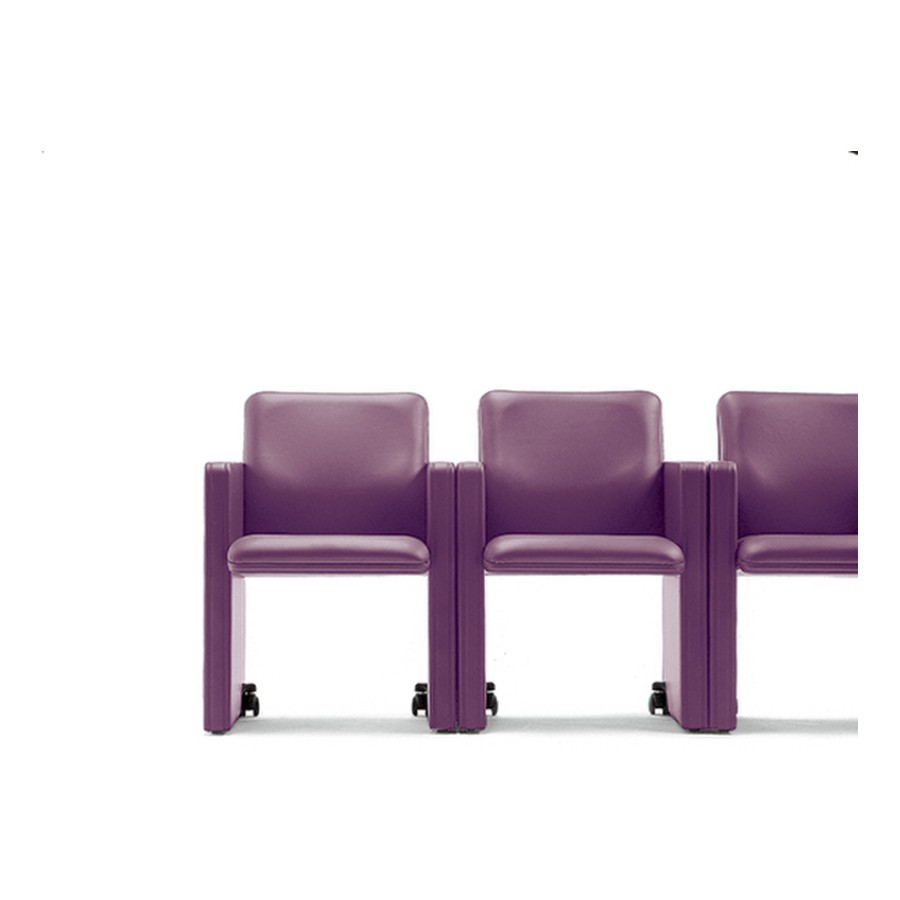 The THF chair, designed by Tito Agnoli, combines a comfortable seat with compact size and clean lines so it can be used as both a single seat and in a row.