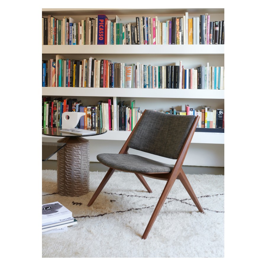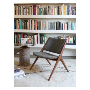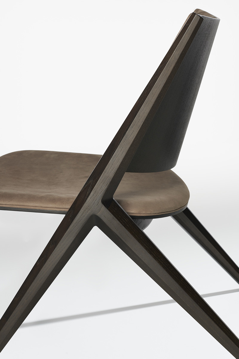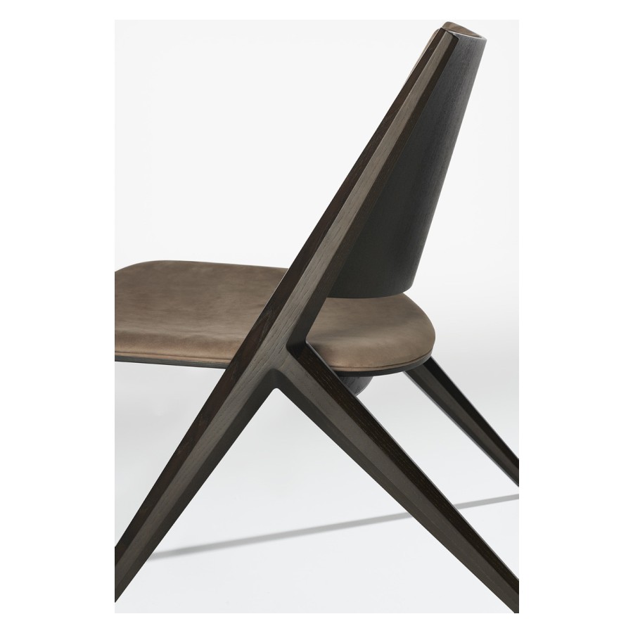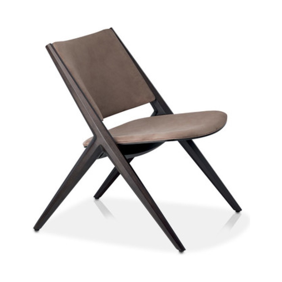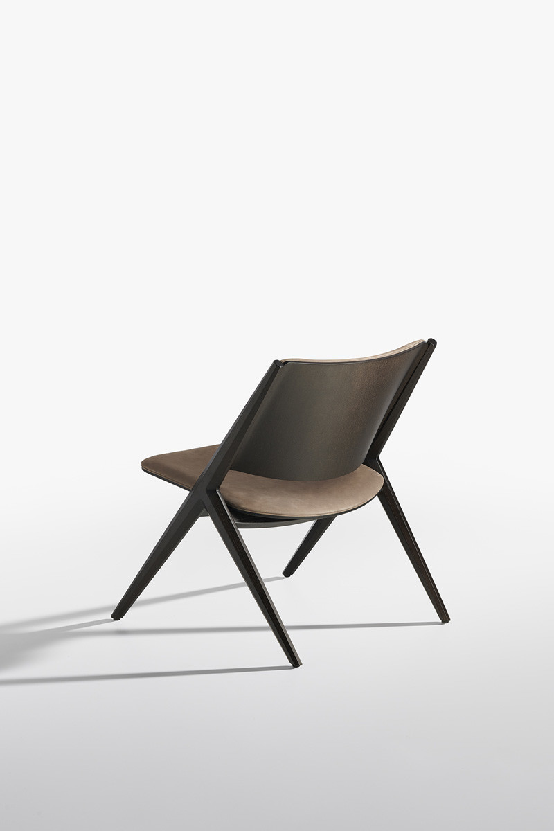 Lounge chair with ash wood or Canaletto walnut frame and seat and backrest padded in fire retardant polyurethane foam. Finishes and covers as per collection.