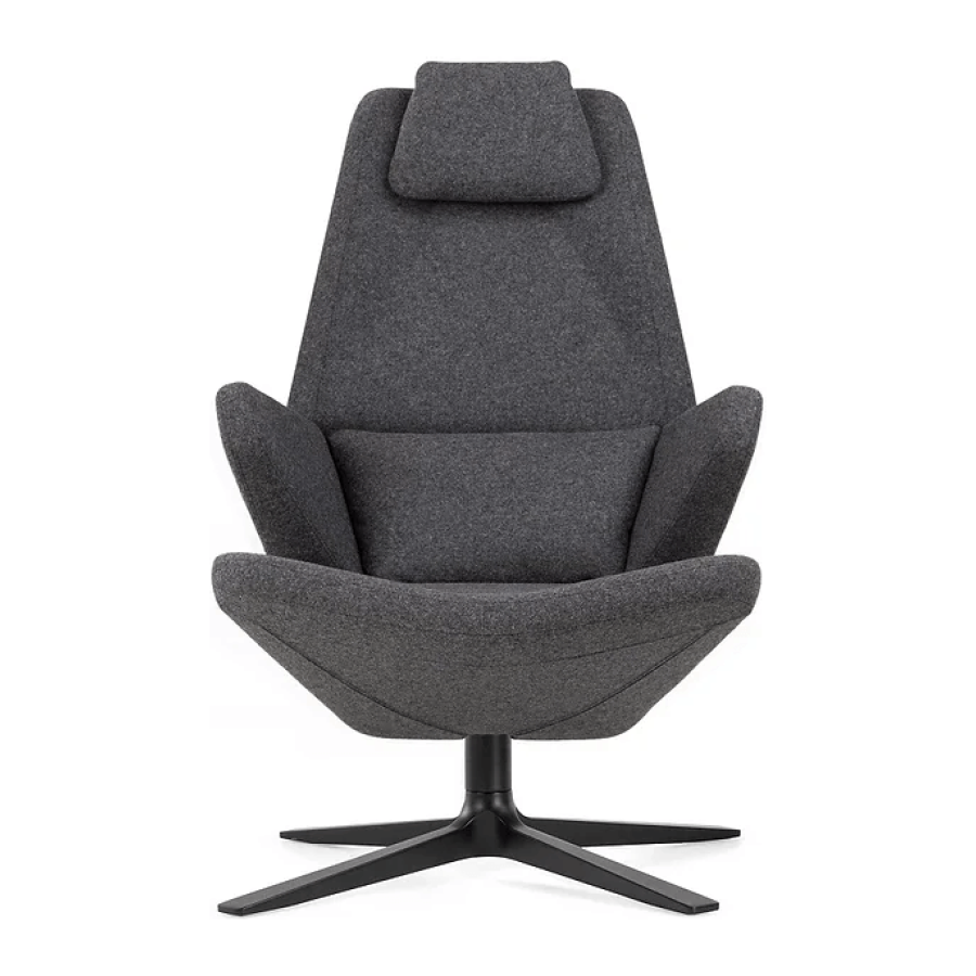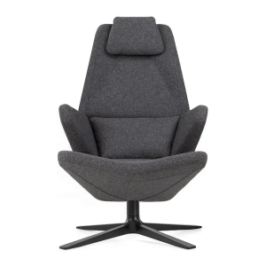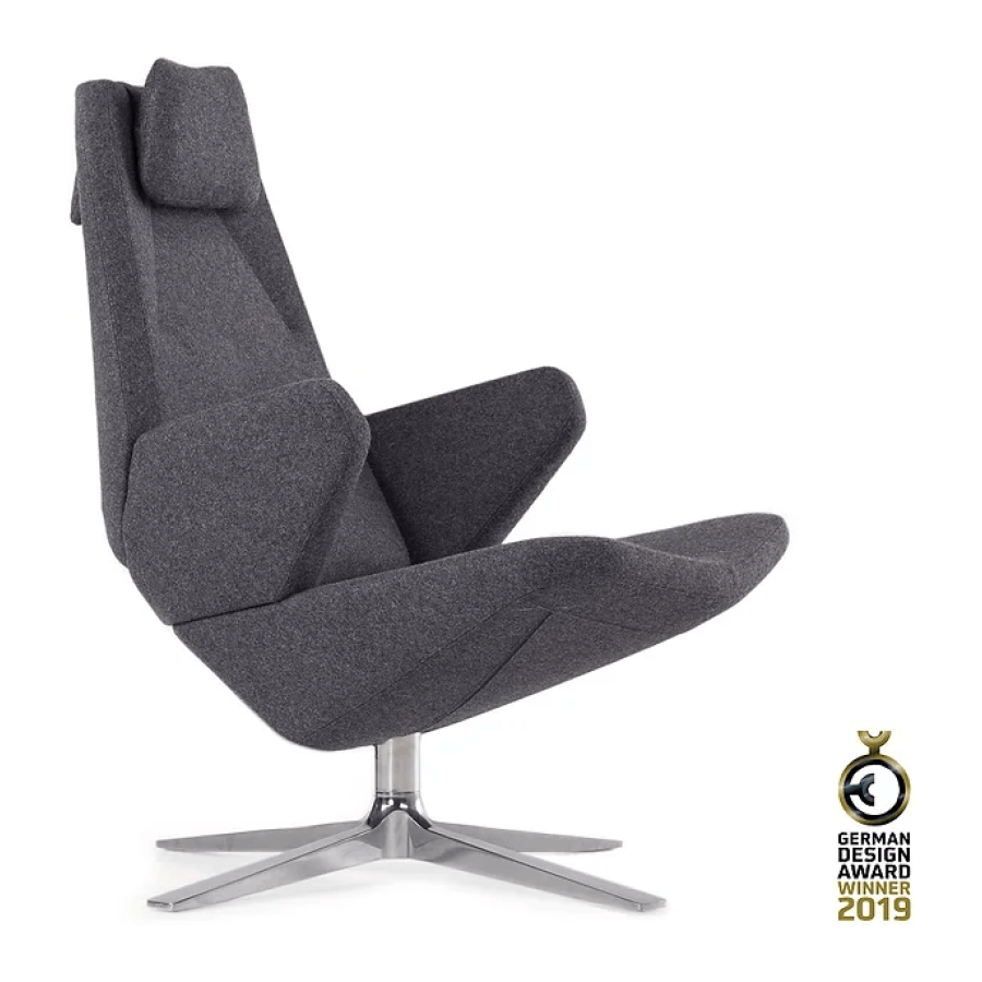 Trifidae are a family of seats comprising three different armchairs which derive from a single typological and formal origin. Small easy chair, high backrest armchair and the enclosing lounge chair share a specific tripartite structure, share similar triangulated forms sprouting from a perceived centre resulting in a characteristically floral in character. When chairs are in use, the tilting of their three main structural segments echoes opening and closing of succulent flower petals. This feature, in combination with their explicit trichotomous nature and star-like shape in perspective view, inspired the botanical title of the series. Although the easy chair differs in size and form from the others, while the armchair and lounge chair share the same base and armrest, all three are observed as neighbouring species in geometric sequences. The backrest variations in two larger models result in their fundamentally different character. Enclosing backrest produces an introverted, exclusive, formally expressive armchair, shielding its user from the immediate context, while the slim, elevated backrest suggests a more sociable, less reserved quality and usage of the chair.