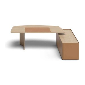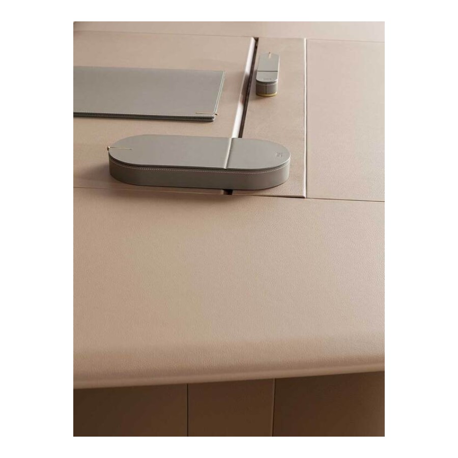 Saddle-leather/leather or Techno Wood also for the legs, designed to accommodate cables. All of the desks, with the exception of the Small, can be accessorised with a modesty panel.