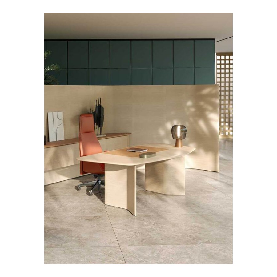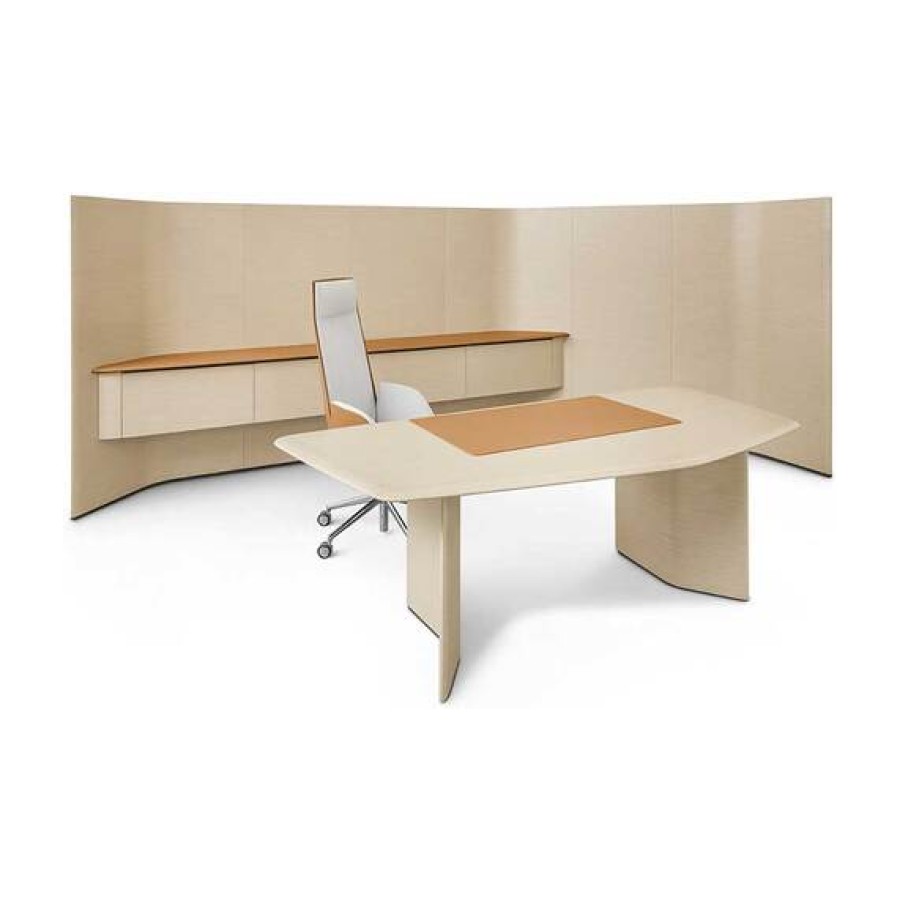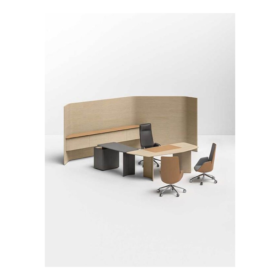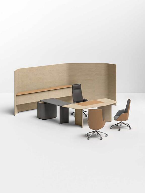 Poltrona Frau presents the Trust executive office system. Desks, self-supporting walls and storage units designed by Lievore, Altherr and Park for a completely new office concept.Trust is a collection that stems from in-depth research into the evolution of contemporary work. Nowadays, in fact, roles are less rigid and hierarchical, with greater emphasis placed on horizontal relationships. Technology increasingly narrows the confines between the home and the office which redefine each other in turn in fluid scenarios where it is necessary to alternate oases of individual concentration with areas of relaxation and places for meeting and exchange.