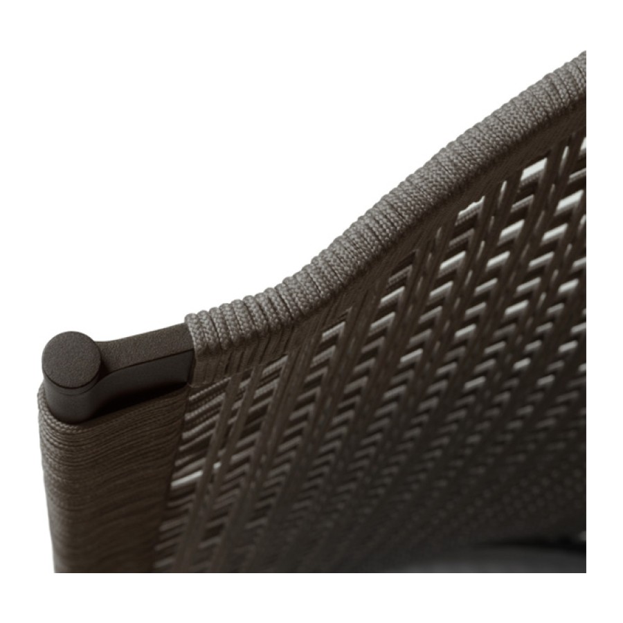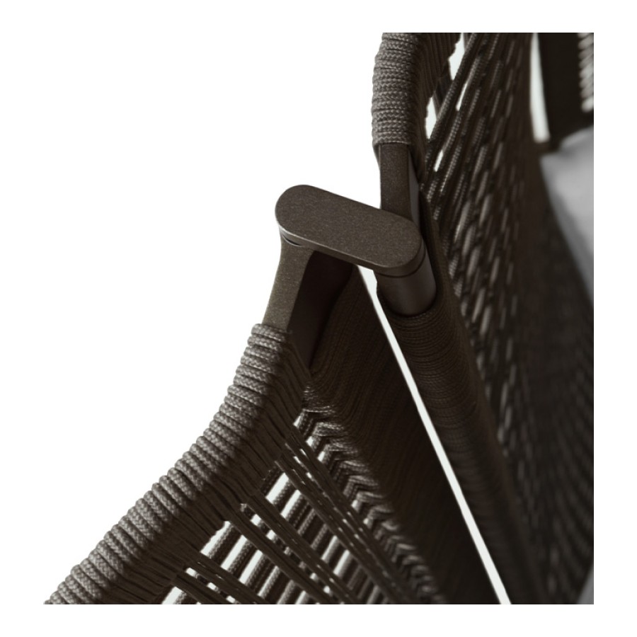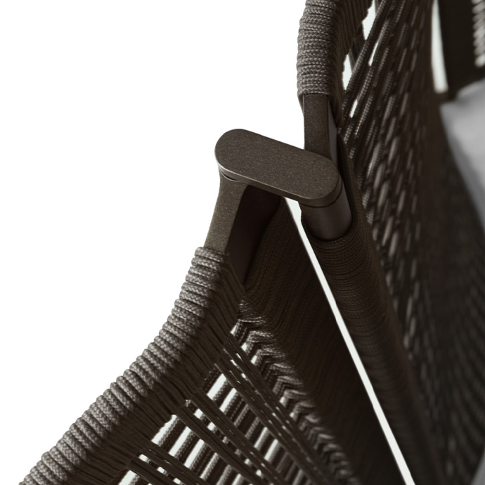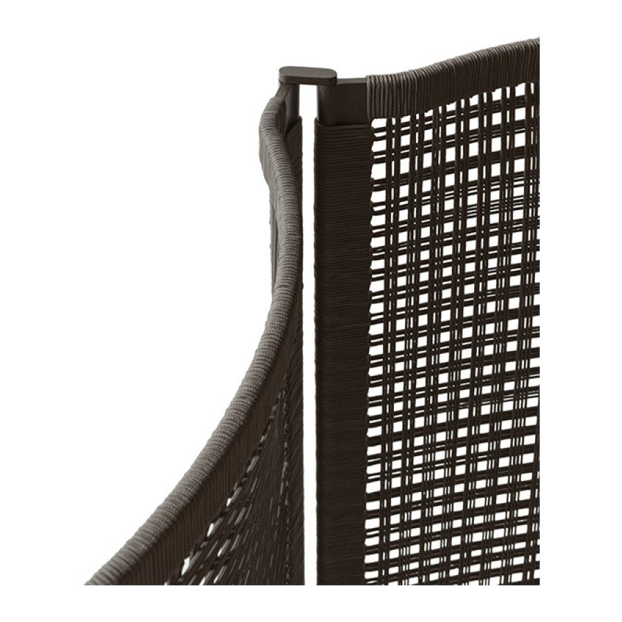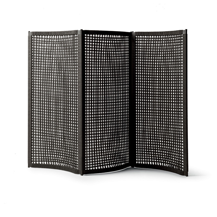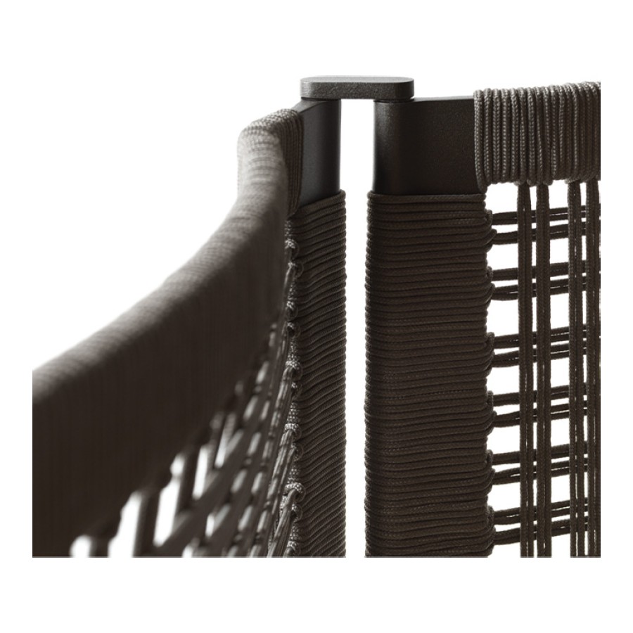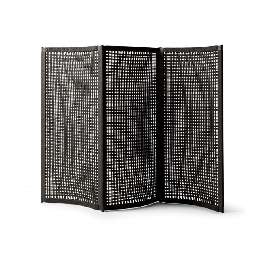 The Ueno screen, in line with the Timeout collection, is characterised by its burnished metal frame and hand-woven polypropylene cord in the colour anthracite. A decorative element that helps modulate the space, adding a discreet touch of style to every outdoor environment.