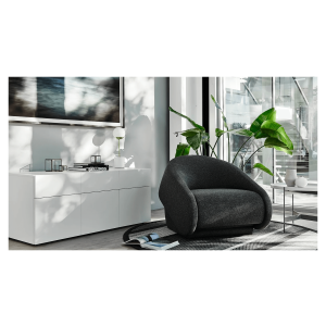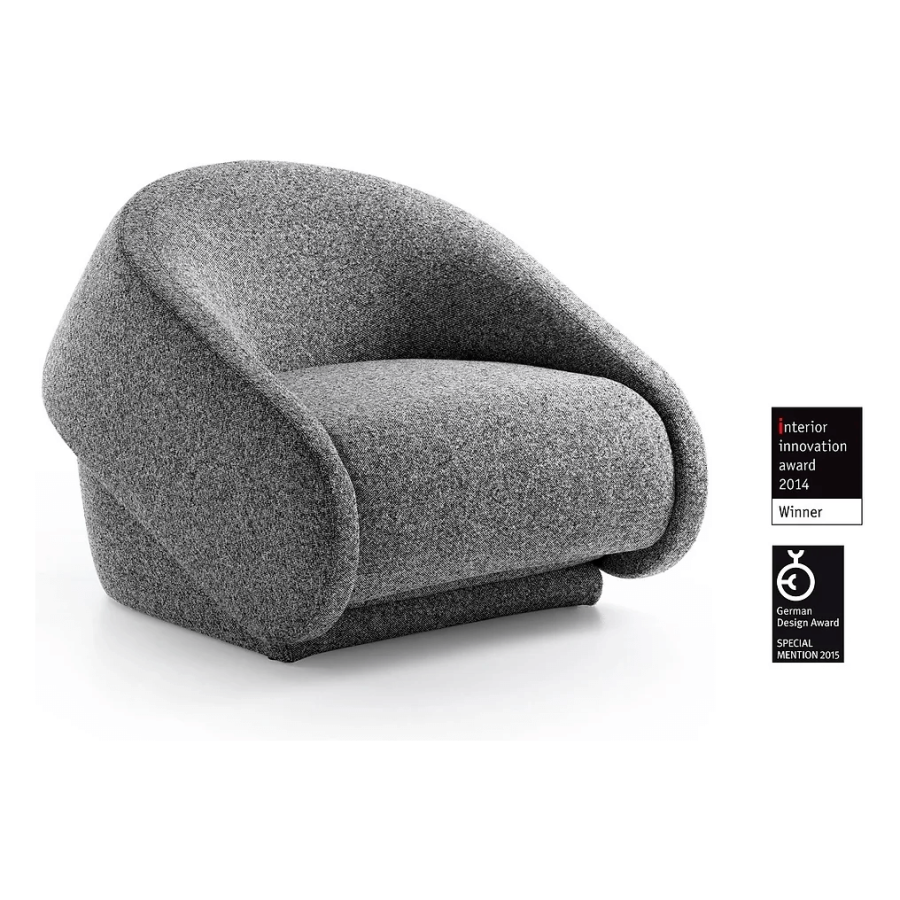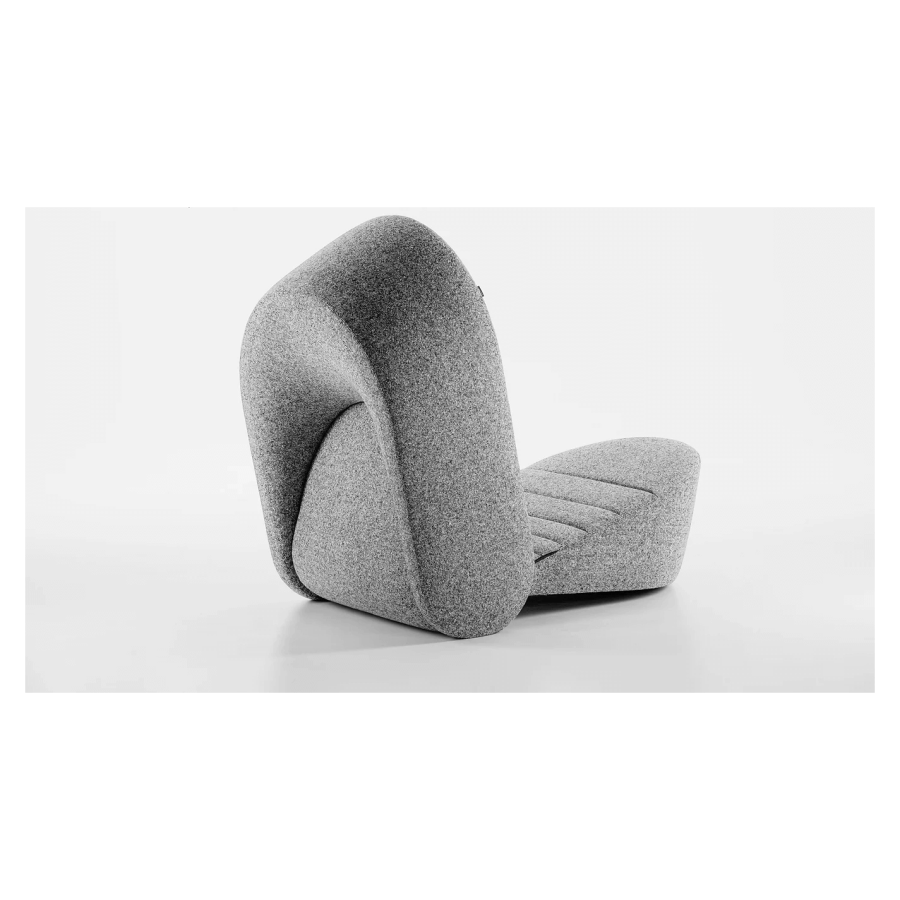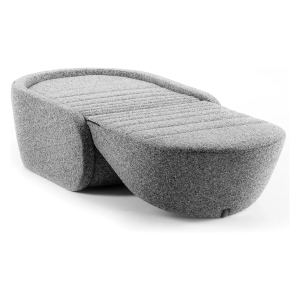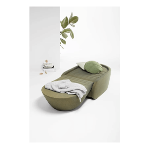 Up-lift represents innovation in an armchair typology with its integrated bed. Its shape allows for transformation through the simple raising up of the backrest, which causes the automatic lift of the leg rest, whilst maintaining an optimal height. Its harmonious form consists of two separate volumes, which rotate around each other in an eccentric fashion. The armrest is curved, as it also functions as a wheel, and the backrest is tilted and rounded to minimise the volume. These curvatures are what characterise Up-lift. Besides its specific rotation, harmonious ergonomics and shape, every detail of Up-lift has been carefully thought out and designed. Special attention was given to the lower construction. Elastic bands and high quality foam placed at strategic points allow for maximal comfort and minimal bulk. In addition to the armchair, the Up-lift family also includes a loveseat, which unfolds into a double bed. Together or apart, they allow for free furniture configuration, and their dual functions provide interesting interior layout scenarios that call for additional sleeping furniture.