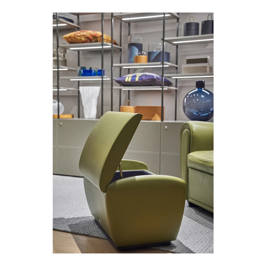To mark the 90th anniversary of the Vanity Fair armchair, the company asked designer Roberto Lazzeroni to revisit it and adjust its proportions to make it even more comfortable and welcoming. The Vanity Fair XC pouf completes the collection. Its curved and organic lines are inspired by the armchair and reinterpret the typical hallmarks of the Art Deco style to make the object a timeless classic. It can also come in a version with practical internal storage compartment.