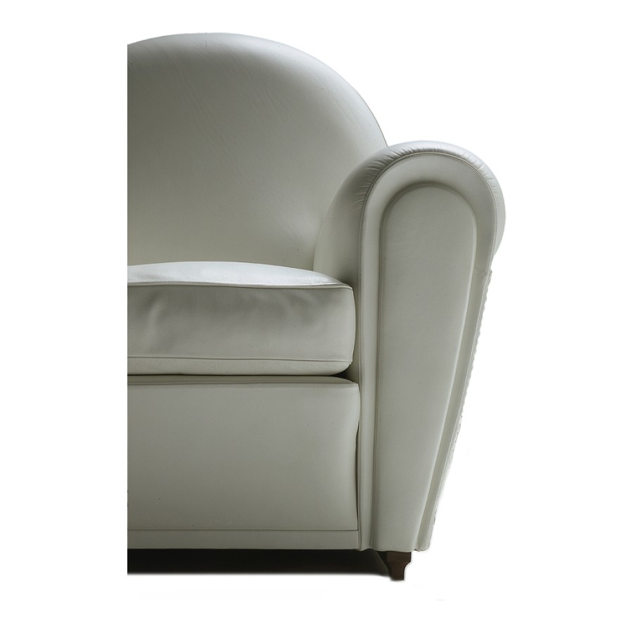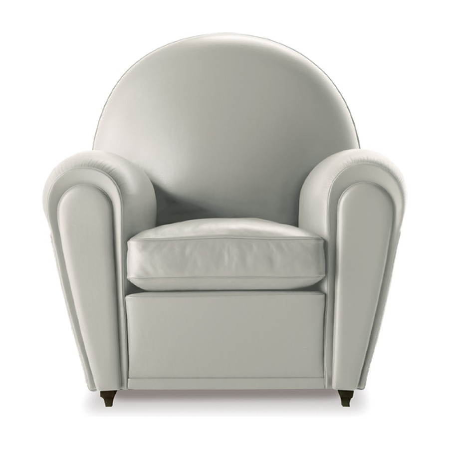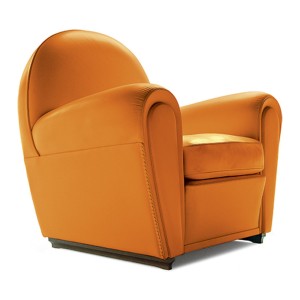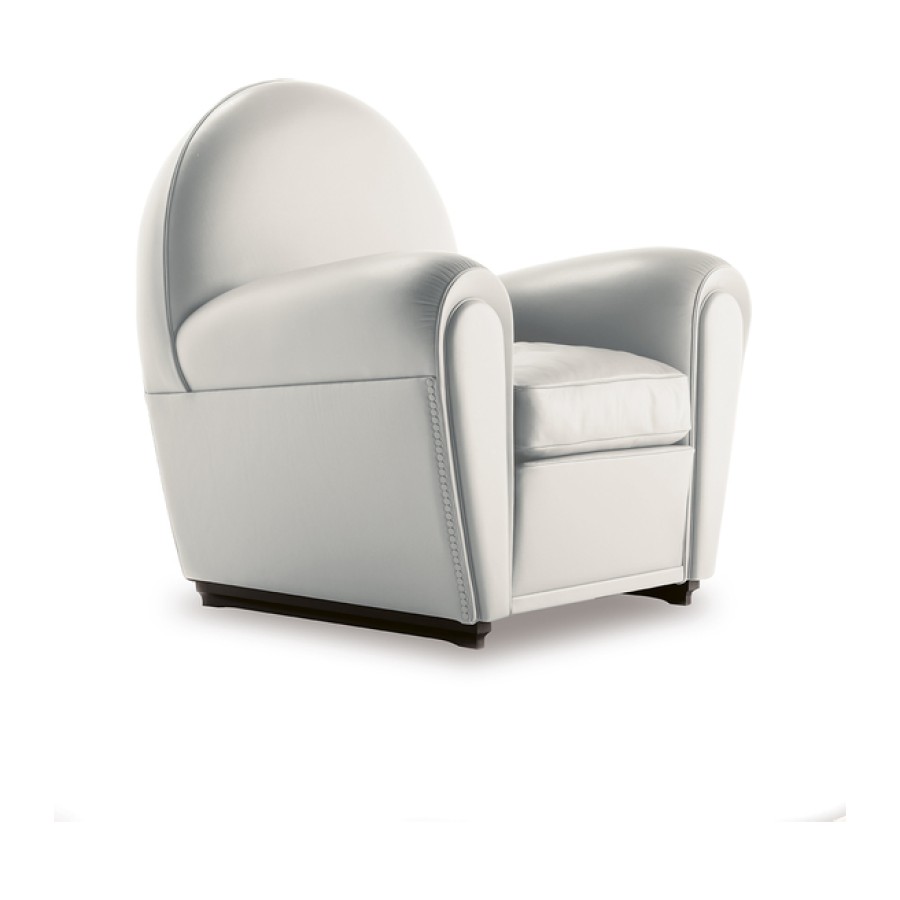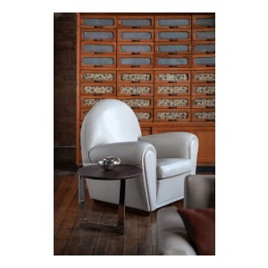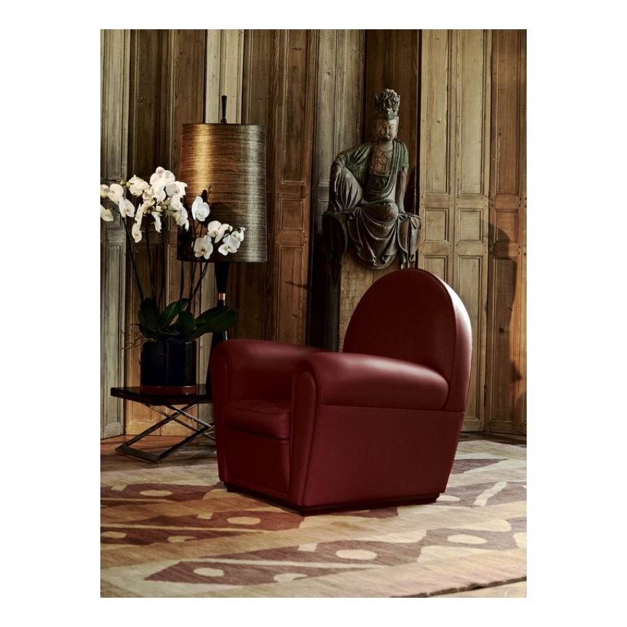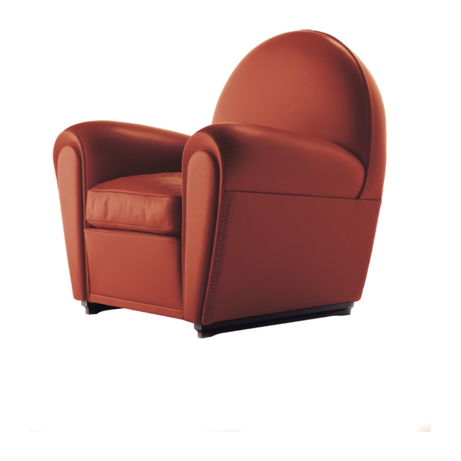 Officially called “model 904” but known, since 1984, as Vanity Fair, over time this seat has become the emblem of Poltrona Frau. It is thought that the project, which first went into production in 1930, was developed on the basis of designs that Renzo Frau left his wife, Savina. The deliberately volumetric configuration of the Vanity Fair armchair saw it become one of the universal icons of Italian design. Also available in a “baby” version, exactly two thirds the size of the original, Vanity Fair is also a comfortable pouf.