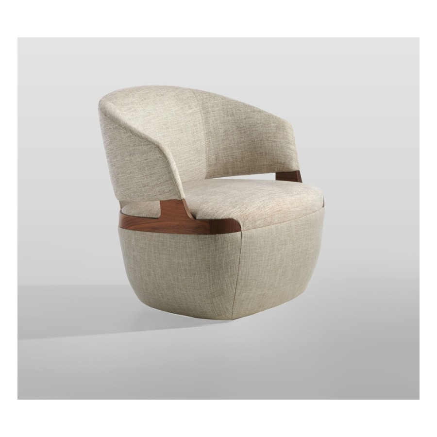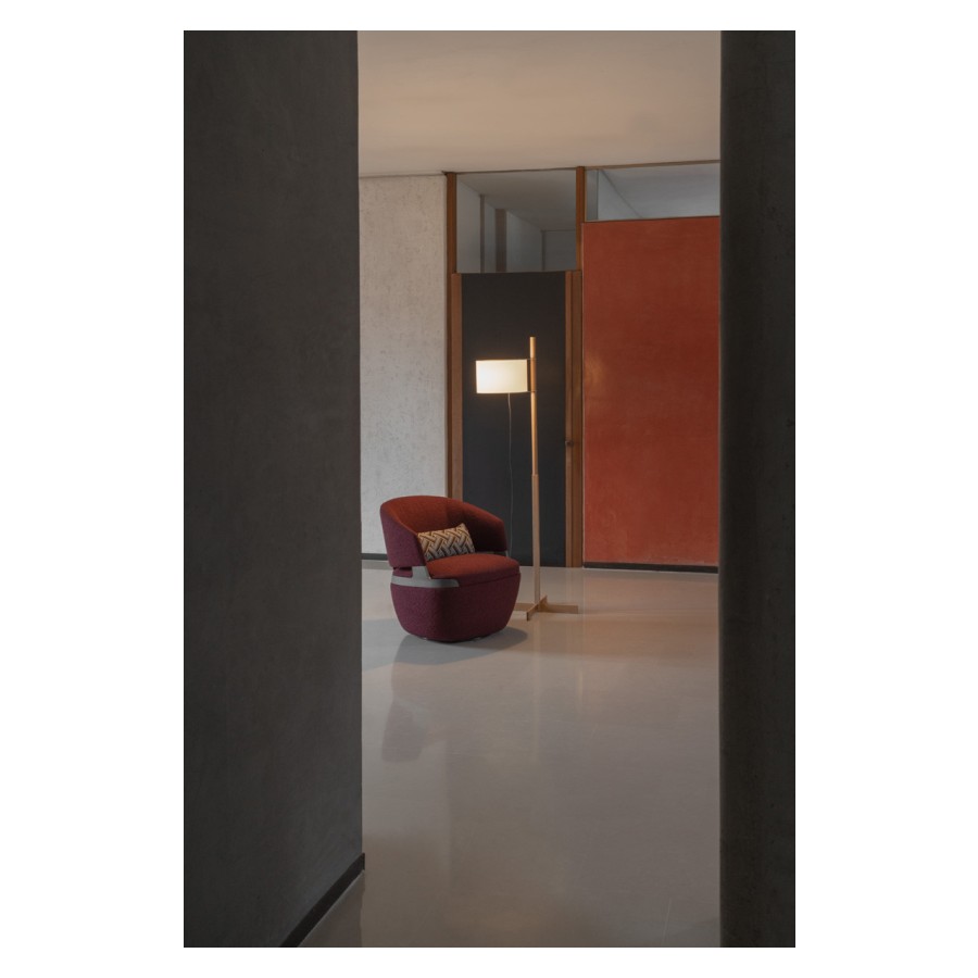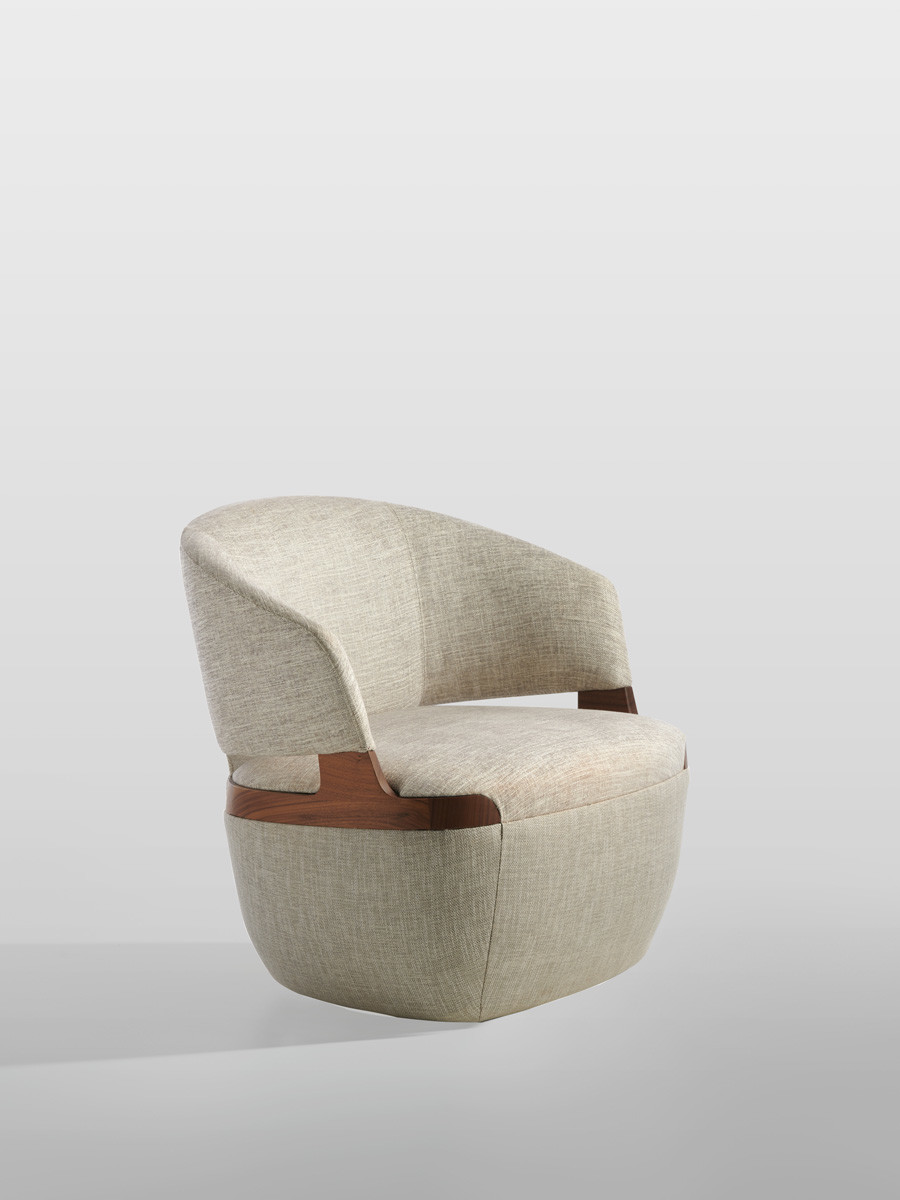 Proposed in the swivel armchair with return mechanism, with seat and backrest padded in fire retardant polyurethane foam and seat’s details in solid ash wood or Canaletto walnut, Velis is compact and welcoming and distinguishes itself thanks to the armrests’ details, in ash wood or Canaletto walnut, where base and seat meet
