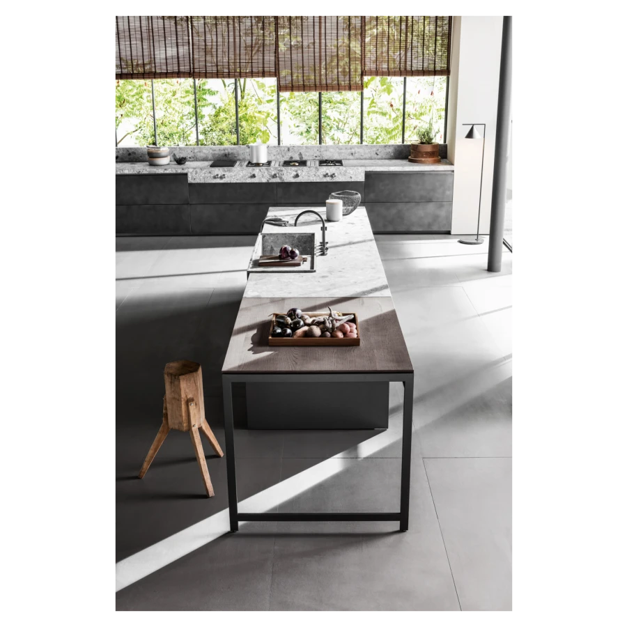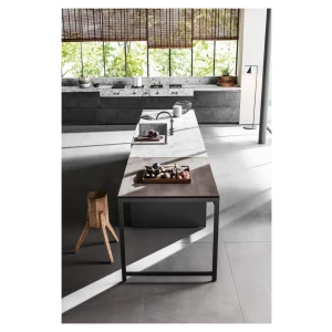 The new marble top complements the existing 20mm and 60mm tops, as well as a redesigned snack top with a unique support system adaptable to other kitchens in the Molteni&C collection.