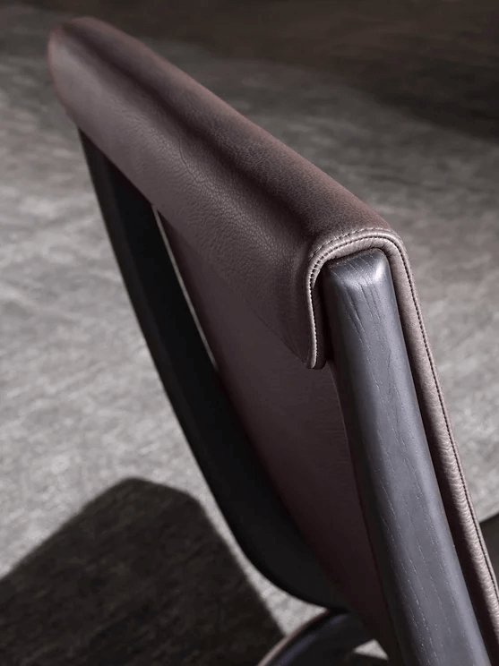 A frame, printed and shaped anatomically using a thin layer of polyurethane, finds its natural place by hooking itself to the two top and bottom cross-bars of the frame. The result is an exceptionally comfortable, all-in-one system that seamlessly links seat and backrest. Yoell can be upholstered in textiles, leather or hide-leather from the Molteni&C range.